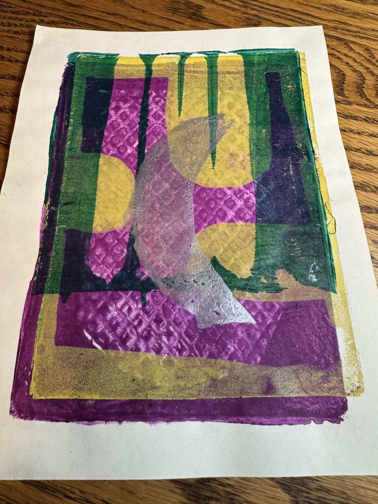 First experiment with Gelli plate printing! I was feeling Mardi Gras vibes for some reason! I wish the silver had turned out a bit more opaque, but I’m generally pleased!