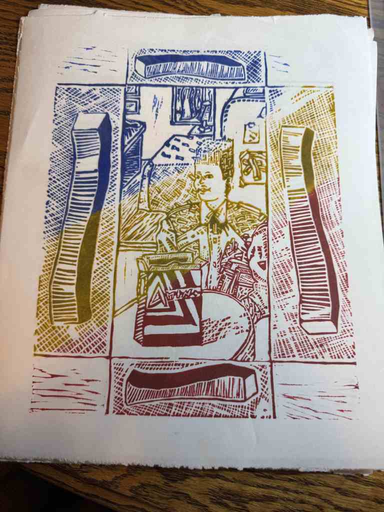 I was browsing through on old issue of Heavy Metal and found an old comic by Mark Fisher that I really loved. I wanted to reproduce a section of it to work on fine textures and interpreting a piece of art into a different medium. I had to ditch a lot of the original shading, but had fun trying out different textures to different effect. On the black and white version above, I cut into the sides and folded it up into 3D rectangle, which ended up looking pretty neat! I also took some time to try adding colors in different ways, both on top of the black and white print and with rainbow/gradient inking. The gradient ended up working the best (pictured above)!