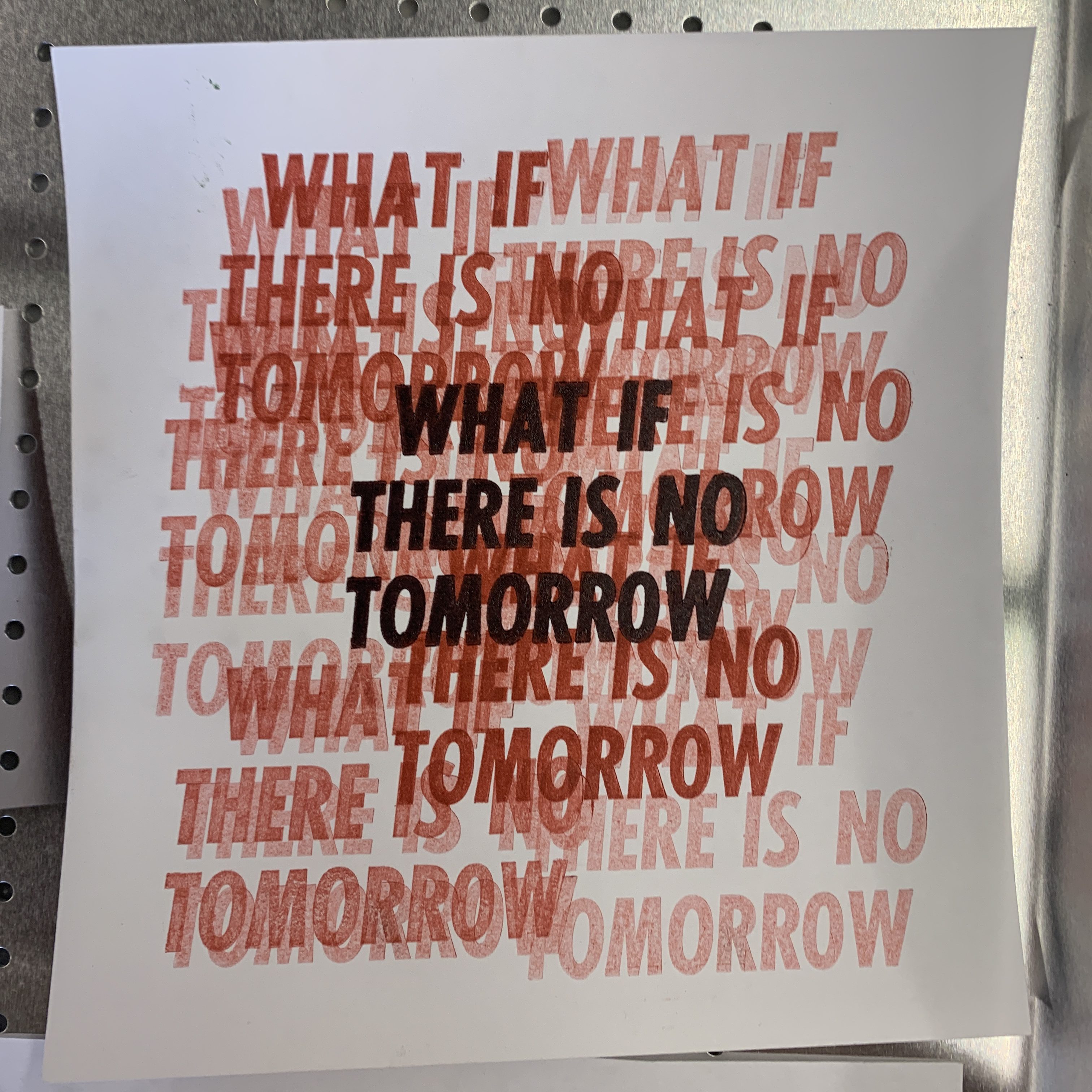 Letterpress print with Caligo relief inks. Experimenting with freeform and multi-layered letterpress techniques.